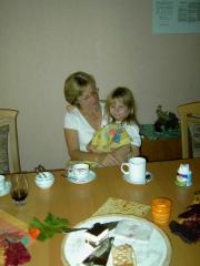 Jasmin Weihnachten 2005 in der Küche mit teilweiser Mama rechts von Ihr: